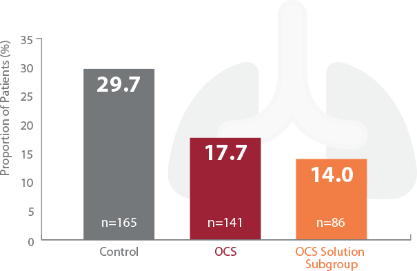 †PGD3 in the first 72 hours is a severe form of acute lung injury that is a major cause of early morbidity and mortality encountered after lung transplantation. TransMedics OCS Lung significantly reduced PGD3 vs control group in the INSPIRE Trial.